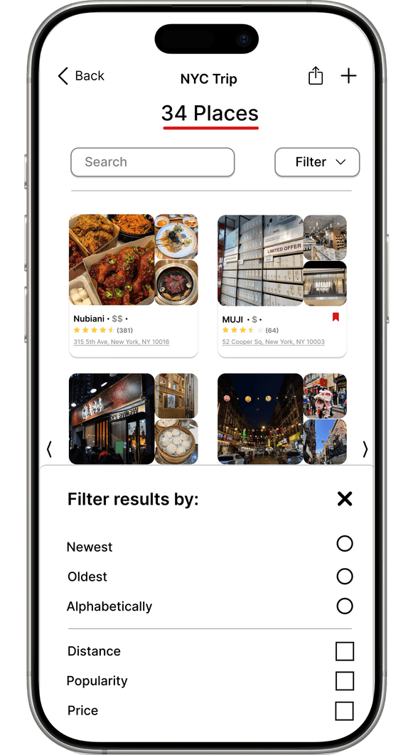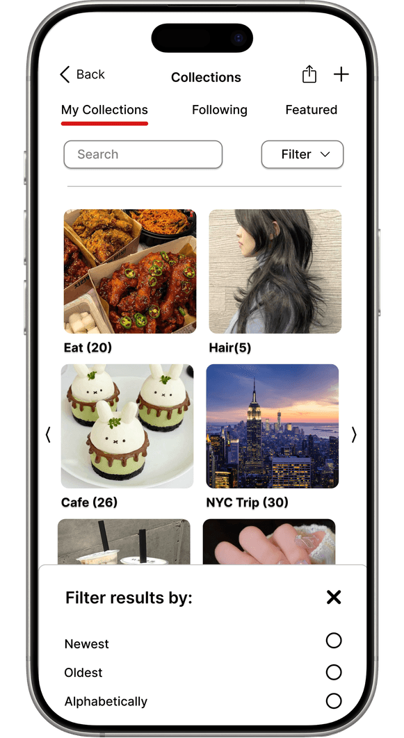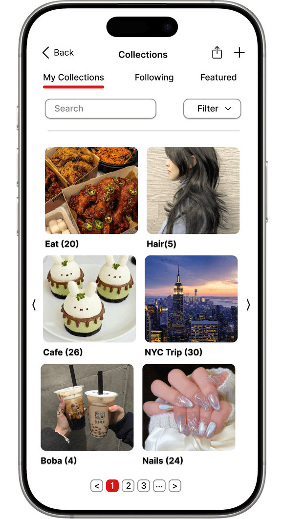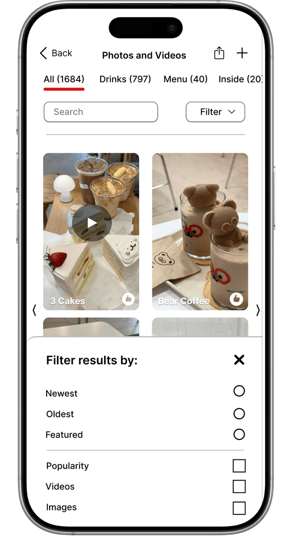 Yelp is a widely used platform for discovering local businesses, reading reviews and sharing experiences through photos and videos. During an unsolicited redesign project, I focused on improving Yelp’s media browsing, collections, and bookmarks features to enhance usability on the mobile app. As the sole designer, I conducted the research, ideation, prototyping and high‑fidelity design. The redesign aimed to create consistent navigation, improve content discovery through better filtering and search, protect user actions and optimize space usage with grid layouts.