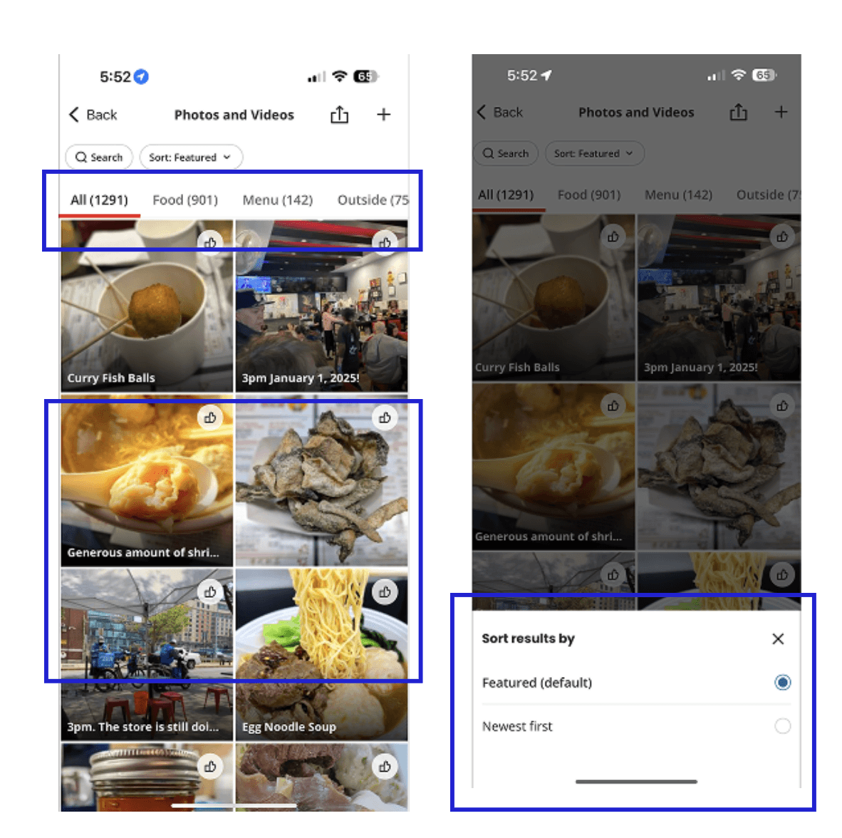 Although Yelp offers an extensive database of images and videos, users find the media browsing experience unintuitive and cluttered.